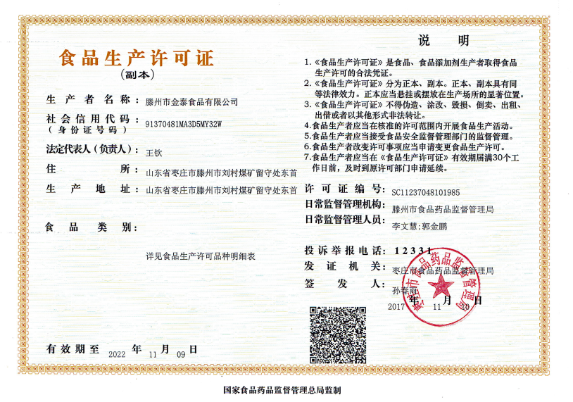 滕州市金泰食品股份有限公司是滕州一家大型民營(yíng)企業(yè),成立于2017年1月,法人石圣,企業(yè)坐落于山東省滕州市劉村煤礦院內(nèi),占地30畝,個(gè)人獨(dú)資企業(yè),現(xiàn)有員工50人,注冊(cè)資金800萬(wàn)元。年生產(chǎn)能力10萬(wàn)噸,產(chǎn)值2.4億元。